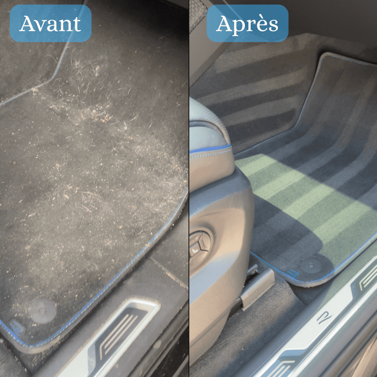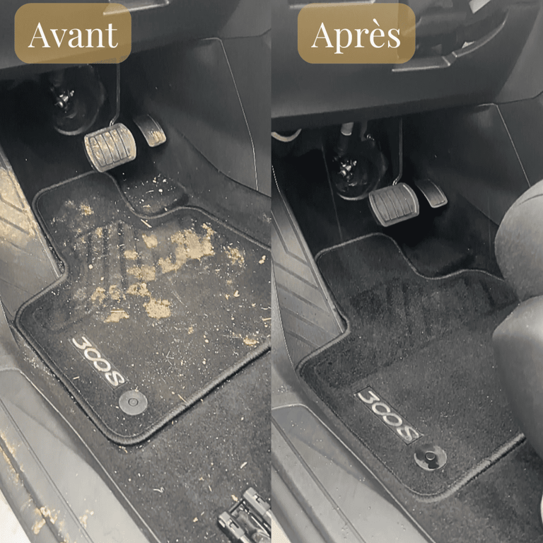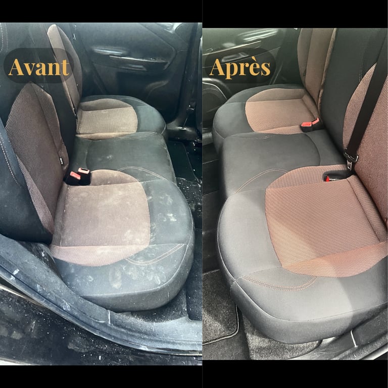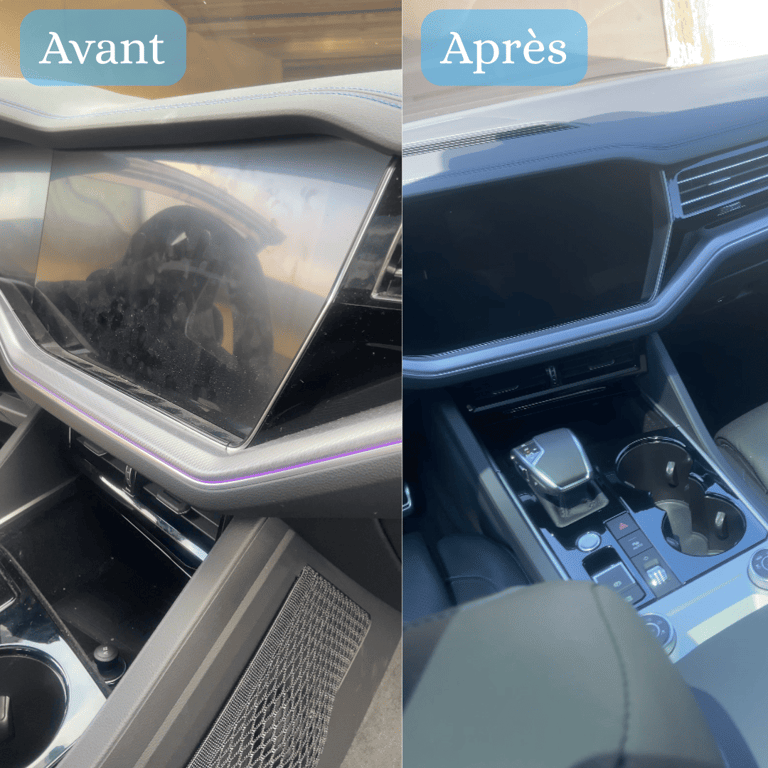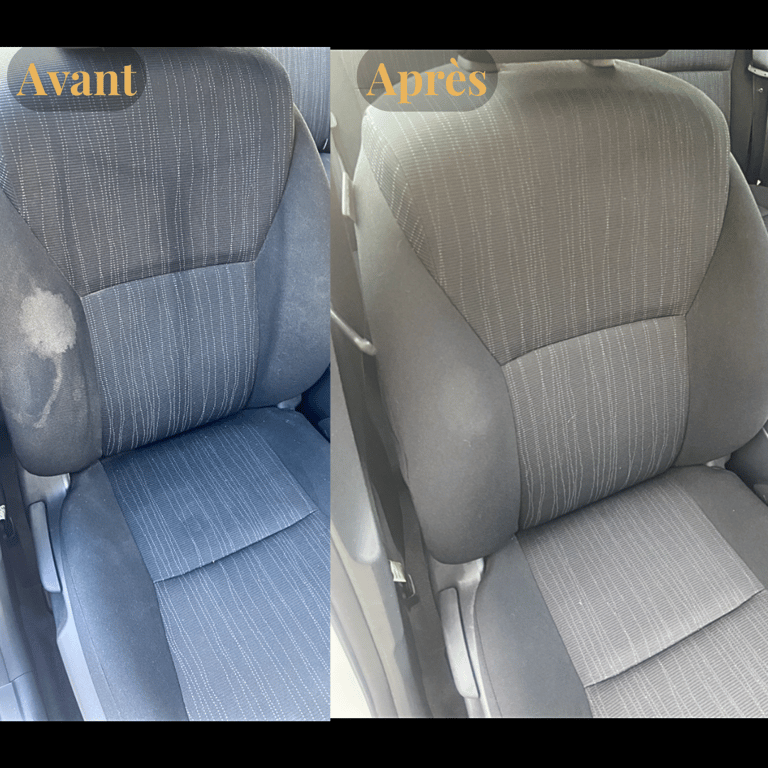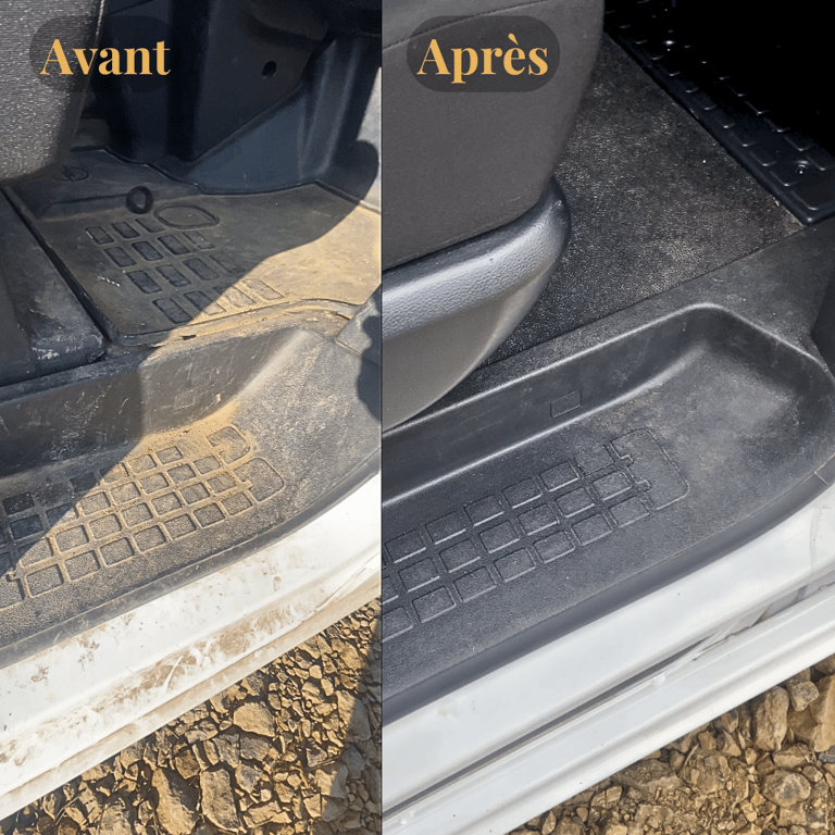 Ce que vous voyez, ce n’est pas de la magie, mais le fruit d’un nettoyage auto professionnel avec un savoir-faire précis et des outils spécialisés. Sièges, tapis et recoins sont traités pour éliminer poussières, taches et bactéries. Le contraste avant/après est saisissant : finies les traces, place à un intérieur de voiture propre et éclatant.