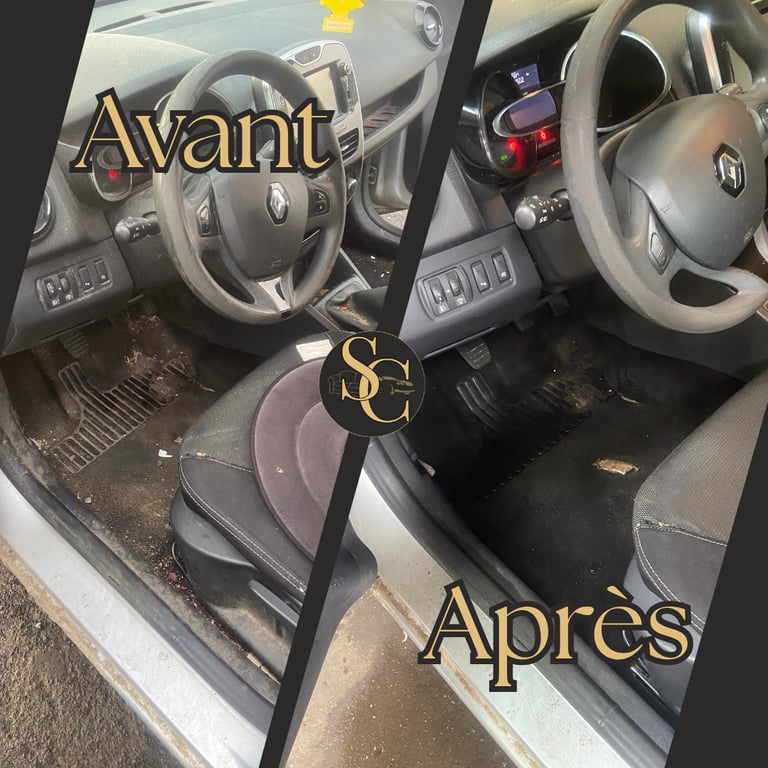 Avant monpassage, l’habitacle peut sembler terne, poussiéreux et usé par le temps. En quelques heures, je reodnne vie à chaque recoin : moquettes assainies, plastiques ravivés, tissus détachés et odeurs éliminées.